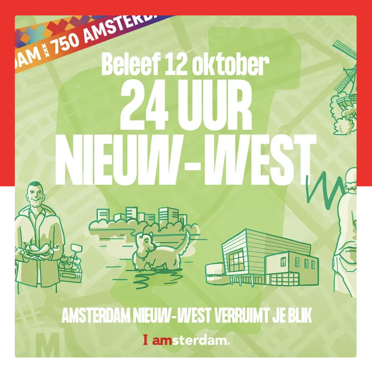 Tijdens 24 uur Nieuw-West op 12 oktober kun je de hele dag lang Amsterdam Nieuw-West beter leren kennen. En wij doen mee!