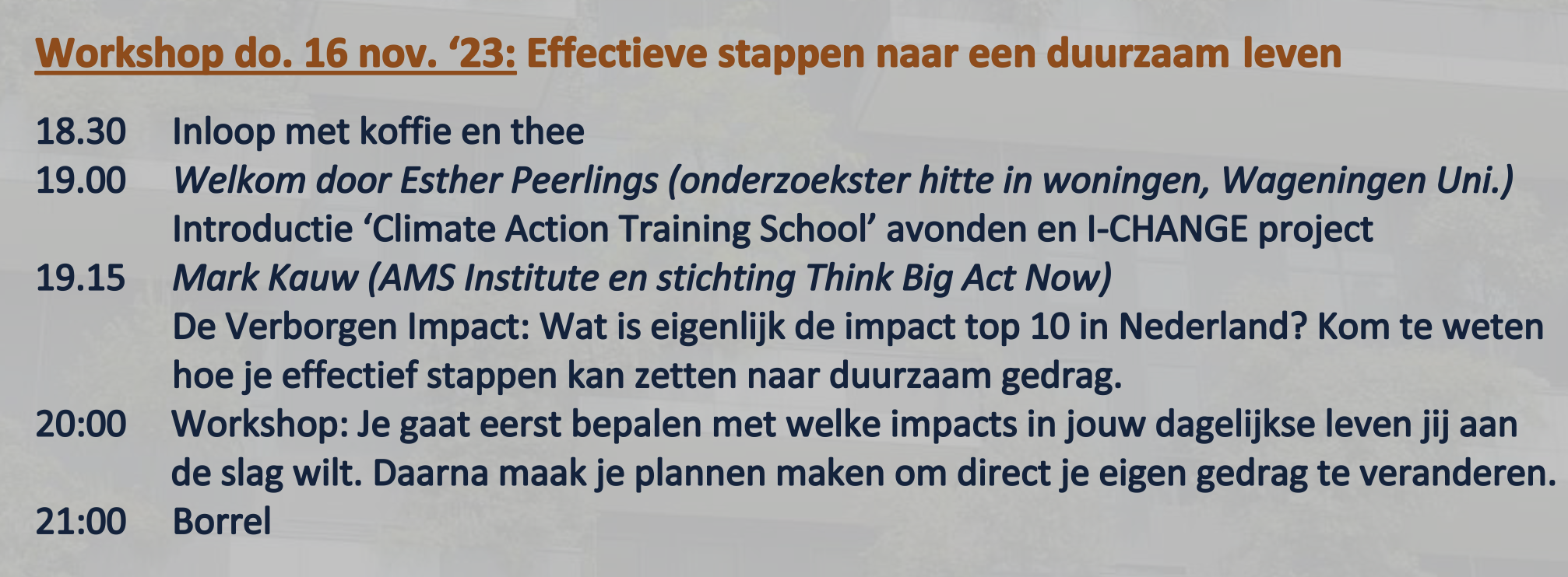 Flyer workshop avonden Climate Action Training School