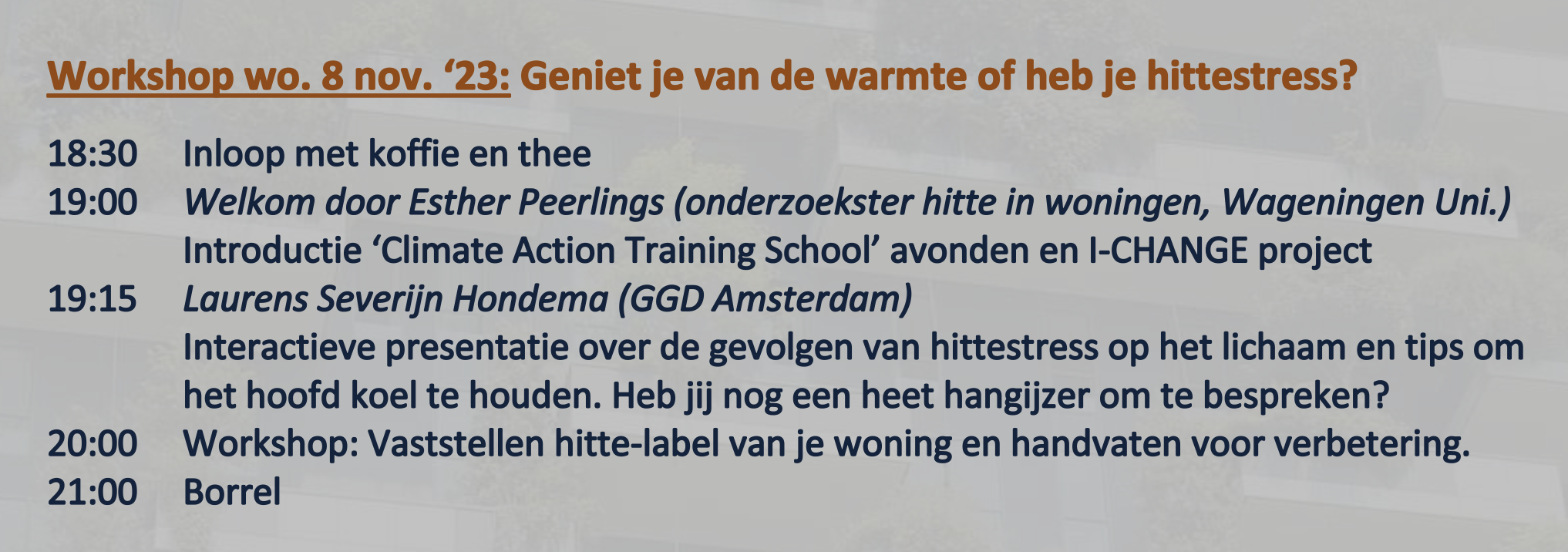 Event: “Geniet je van de warmte of heb je hittestress?” Workshop Avond Climate Action Training School