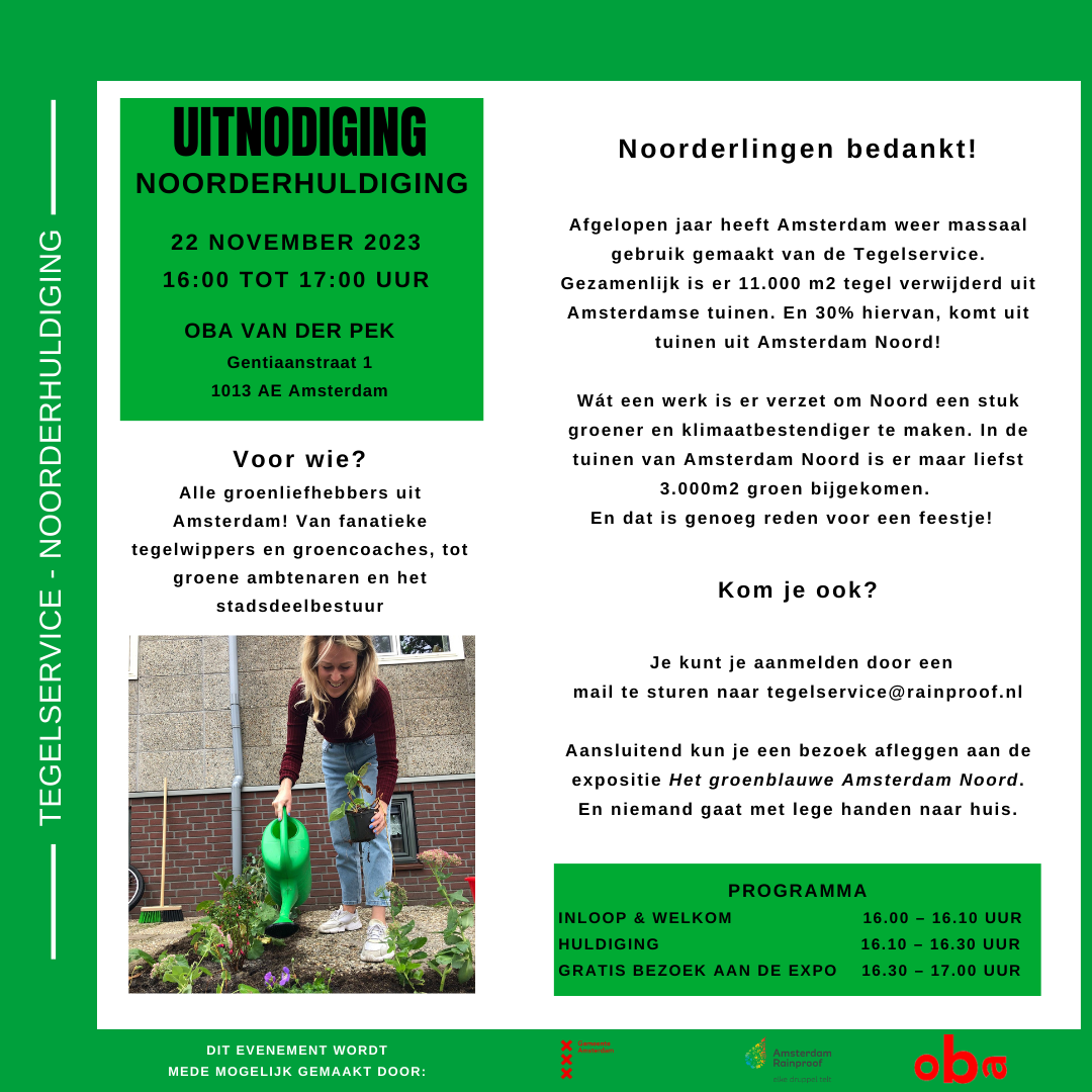 Amsterdam is ontzettend druk bezig geweest met tegels uit de tuinen wippen. In totaal zijn 11.000m2 aan tegels verwijderd. Daarvan komt 30% uit Amsterdam Noord! Wat een prestatie!