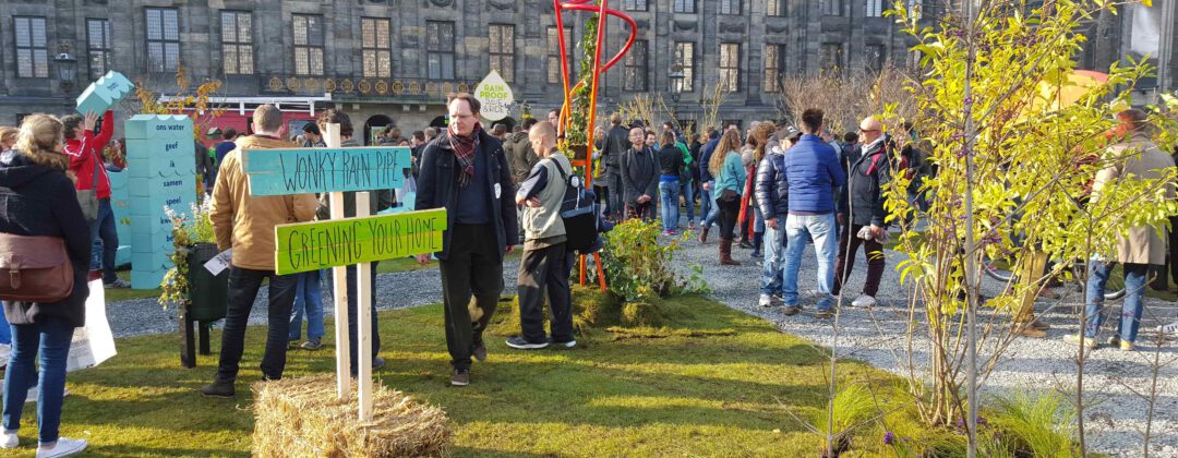 Zondag 1 november was de aftrap van de ‘klimaatmaand’ november, in aanloop naar de klimmaattop in Parijs en de start van de Amsterdam International Waterweek (AIWW). Vanmiddag wordt de AIWW geopend, en zal Rainproof weer goed zichtbaar zijn.