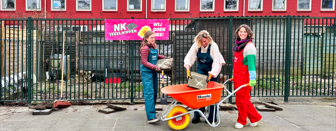 Met de start van de lente is ook het NK Tegelwippen en Tegelservice gestart. Om deze start te vieren zijn tegels gewipt en opgehaald bij bewoners van Fazantenweg en basisschool De Kinderboom in Noord. Een startactie waarbij de school een mooie eerste stap heeft gezet in het groener maken hun plein. De Tegelservice haalt gratis tegels op bij bewoners die tegels uit hun tuin verruilen door groen. De service rijdt tot eind oktober door heel Amsterdam.