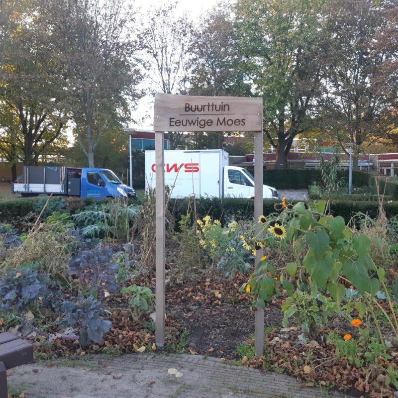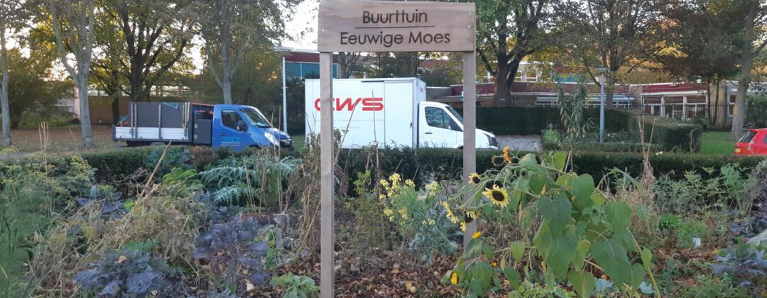 Midden in Tuindorp Oostzaan ligt de buurtmoestuin Eeuwige Moes. Hier wordt op een biologische manier groenten, fruit en kruiden gekweekt. Samen met bewoners, voor bewoners. Het doel van het project is om gezamenlijk met de bewoners te werken aan een zelfvoorzienend voedselbos. Dit gehele stuk is onverhard. Daarmee is Tuindorp Oostzaan een mooie, watervriendelijke tuin rijker!