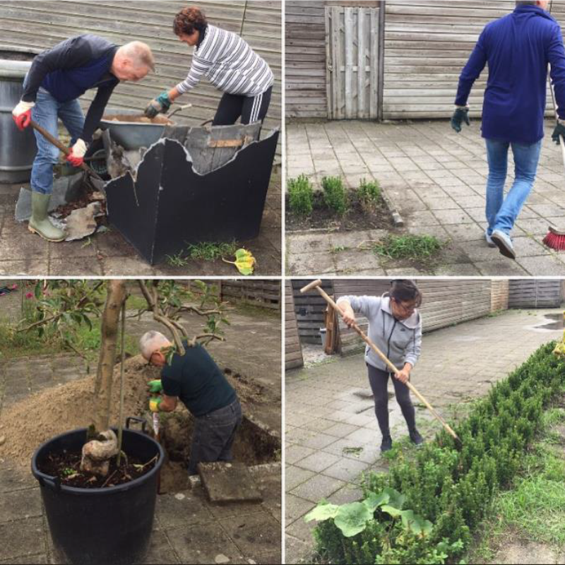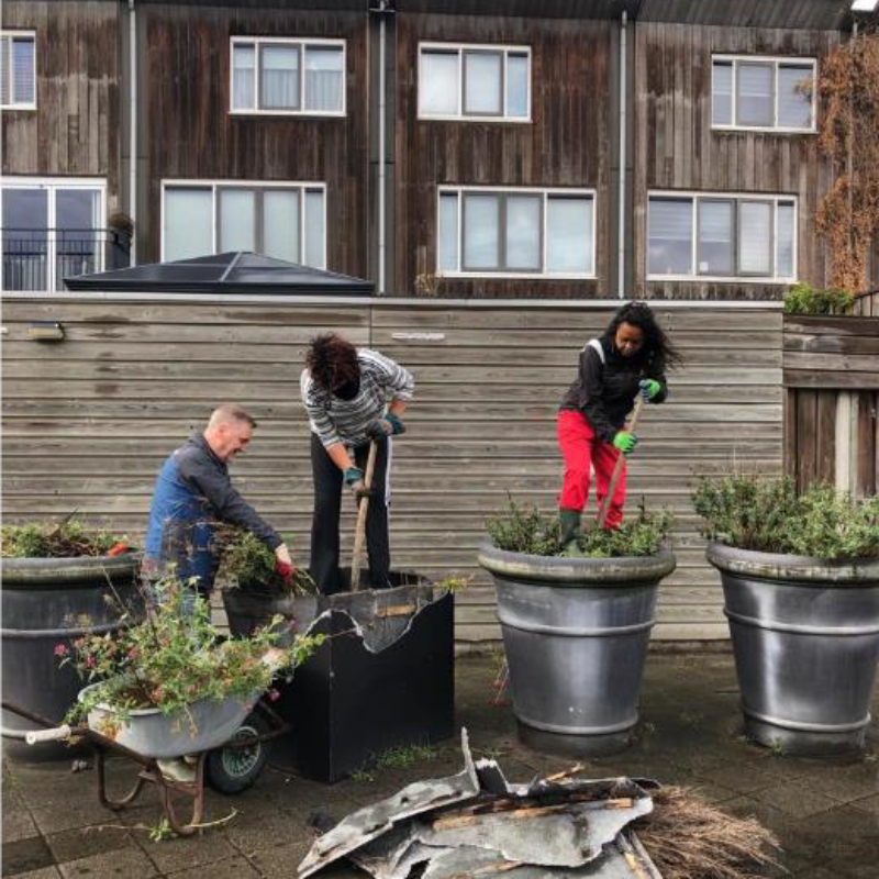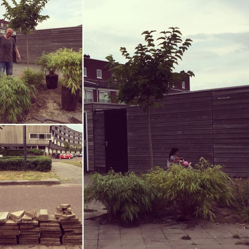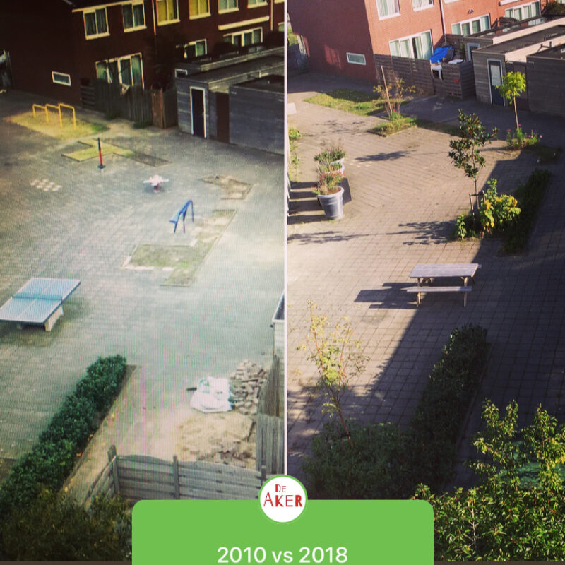 Een groep actieve bewoners wil samen met de woningcorporatie(s) aan de slag. Ondertussen nemen de bewoners zelf al actie en zijn het plein stukje bij beetje aan het vergroenen. Stap voor stap wordt er gewerkt naar een groen hart achter de woningen.