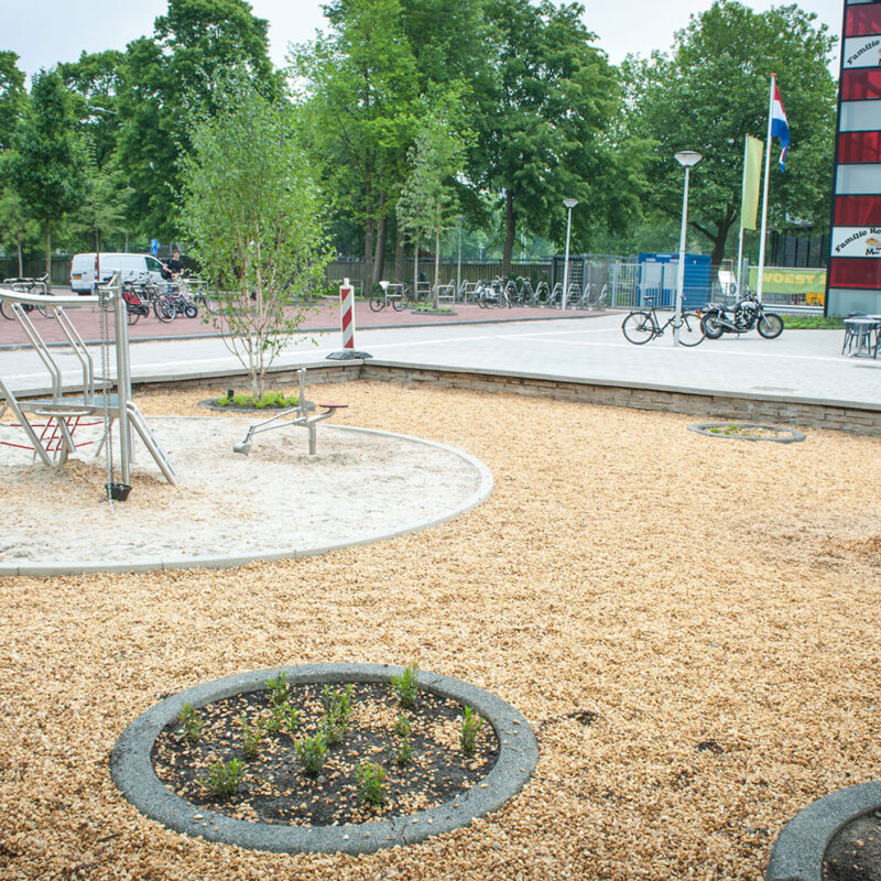 Het zwembad De Mirandabad is in 2015 gerenoveerd. Een mooie aanleiding om ook het voorplein aantrekkelijk in te richten.