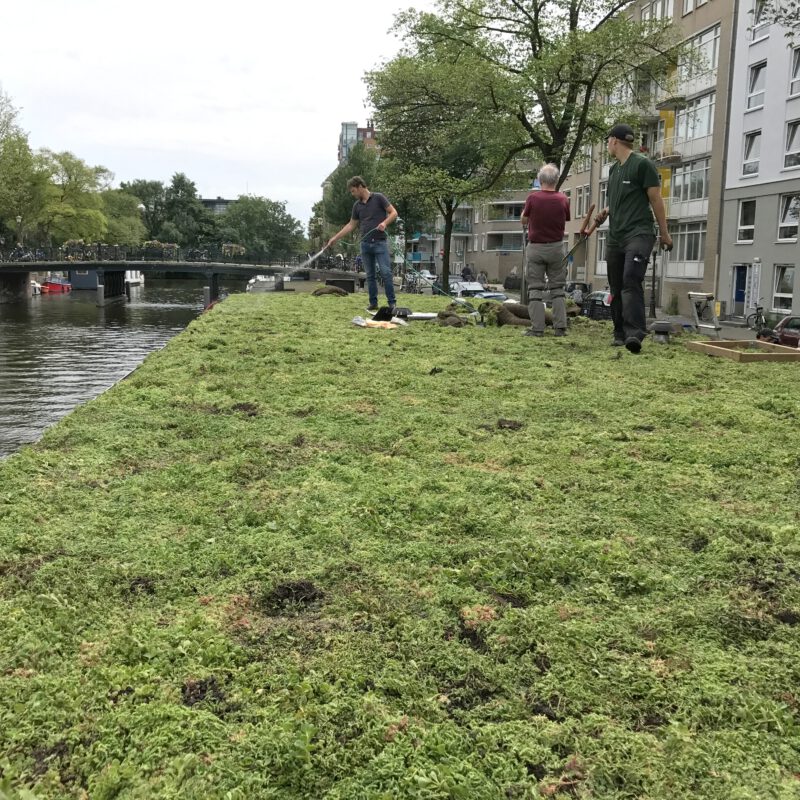 Woonboten hebben de meest zichtbare daken van de stad. Het zijn vaak platte grijze daken die in de grachten liggen. Met het lichtgewicht ontwerp van Urbanscape en Sempergreen kreeg dit grijze dak in een handomdraai een duurzaam groen dak. Het groene dak biedt capaciteit voor regenwaterbuffering, beperkt de opwarming van het dak en zorgt voor een groener straatbeeld.
