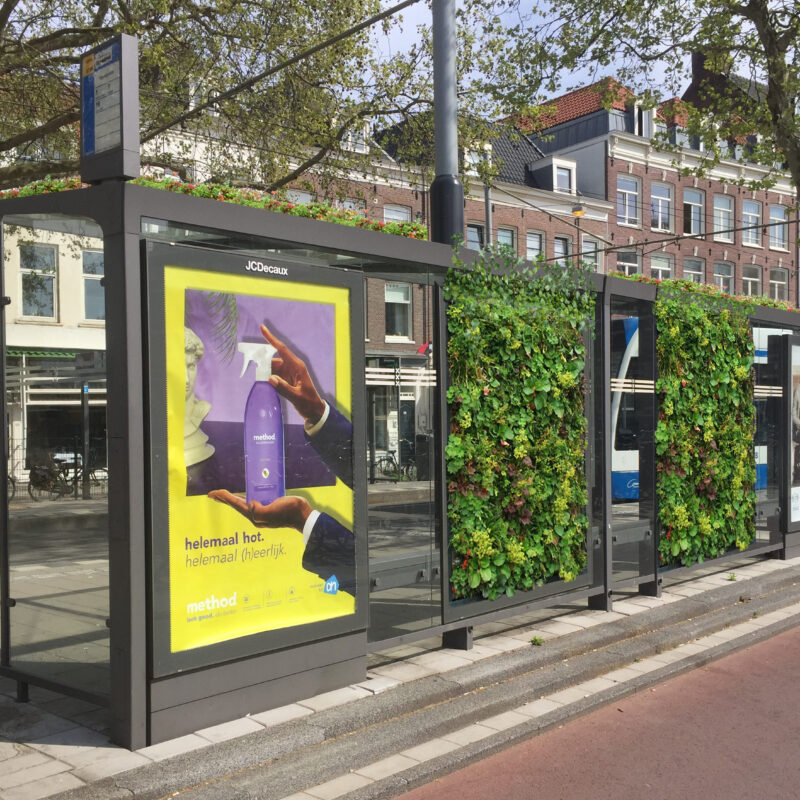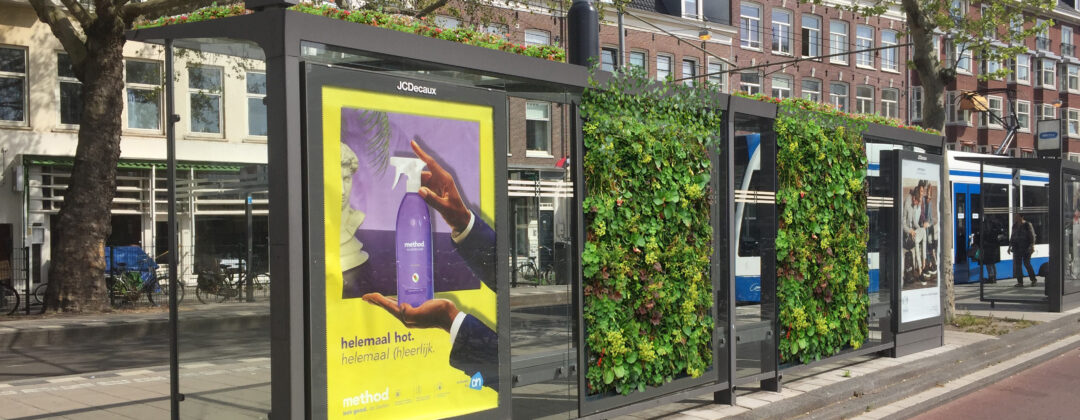 Bomen en planten zorgen voor een fijnere leefomgeving en een mooier straatbeeld, en ze houden onze voeten droog. Na een geslaagde pilot met de groene abri’s op het Weteringcircuit en het Marnixplein neemt JCDecaux de vergroende tramhaltes op in hun assortiment voor Amsterdam.