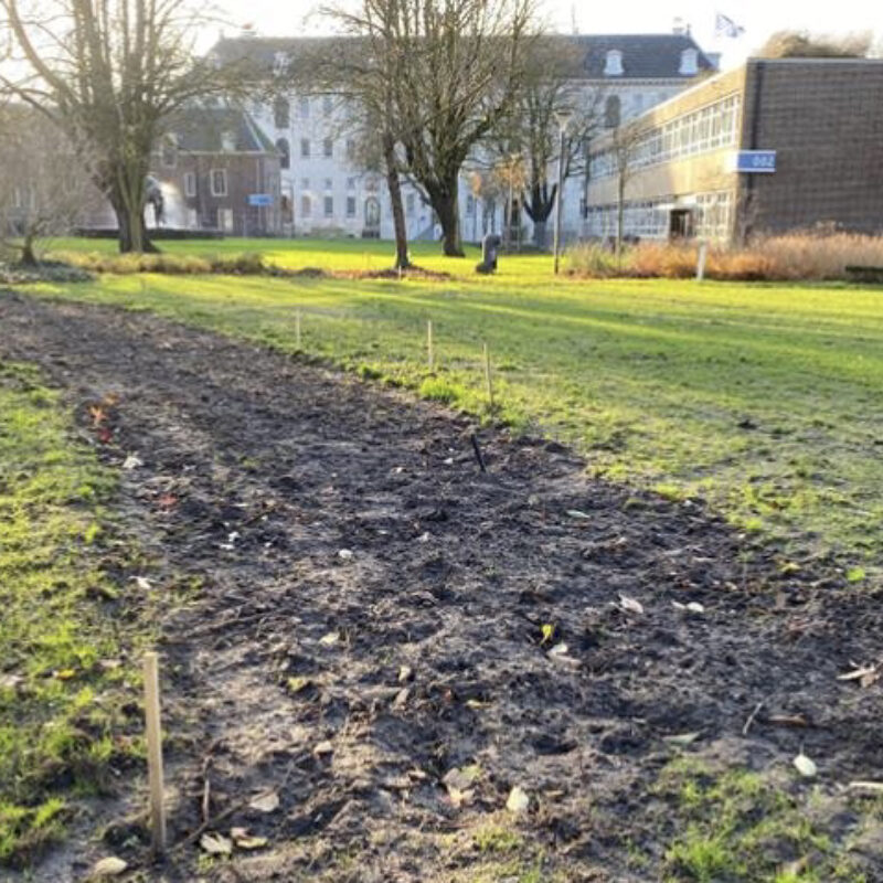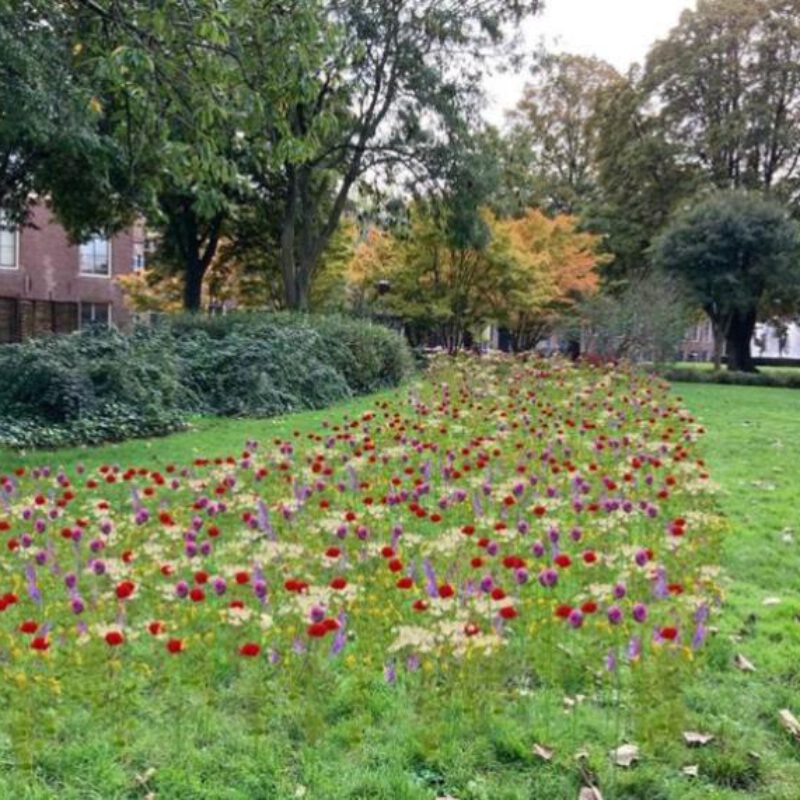 Groenaannemer De Enk Groen & Golf kreeg de opdracht om de biodiversiteit op de Marineterrein te verbeteren. In november 2020 zijn bloembollen gepoot en in het voorjaar van 2021 is een bloemenmengsel gezaaid. Vanaf februari gaan de krokussen, tulpen, narcissen, hyacinten en sieruien bloeien. In de lente zal het bloemenmengsel met onder andere duizendblad, margrieten, avondkoekoeksbloem, rode klaver en boterbloemen floreren. Hierdoor wordt de biodiversiteit van het gazon verhoogd wat bijdraagt aan een gezonde bodem.