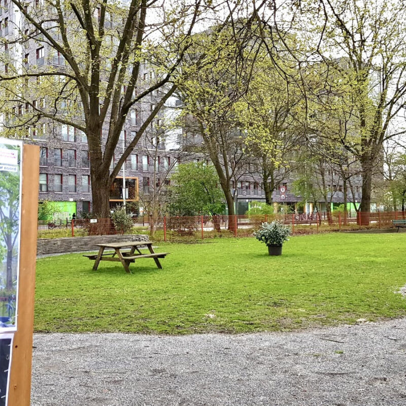 Het begon allemaal bij een speelveldje met een grasveld waar buurtbewoners zelf picknicktafels hadden neergezet. Niet iedereen in de Vogelbuurt heeft een tuin en ook door corona was er meer vraag naar buitenruimte. Een groepje van vier buurtbewoners kwam op het idee om van het grasveldje een oase te maken.