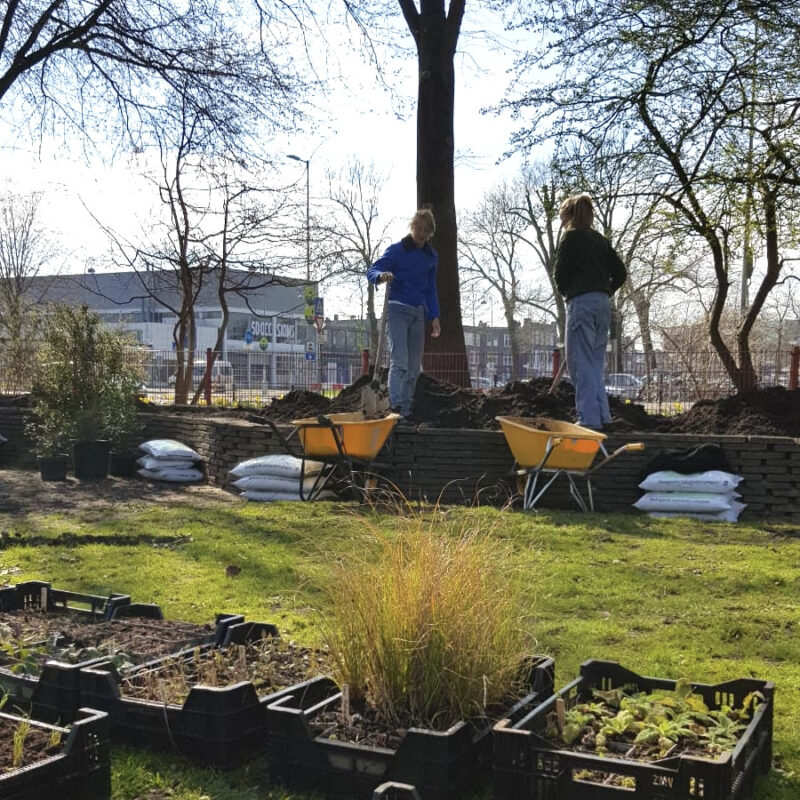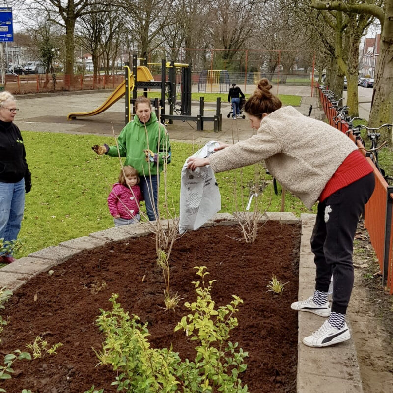 De initiatiefnemers zijn langs de deuren geweest om te vragen of bewoners geïnteresseerd zijn om te helpen. Er zijn verschillende dagen georganiseerd om stenen te sjouwen en de vakken te beplanten. Alle bewoners van de Vogelbuurt konden een bijdrage leveren.“Eigenaarschap moet vanzelf ontstaan. Wanneer je zelf onkruid wiedt, helpt met tegels sjouwen of een van de picknickbanken verft, ga je er met zorg en andere ogen naar kijken. Buurtbewoners gaan er zorgvuldiger mee om”, vertelt Renu. De nieuwe beplanting zal door de buurt worden onderhouden.