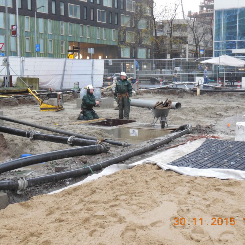 Bij het ontwerp van de fietsparkeergarage onder het Mahlerplein bleek er ruimte over te blijven om relatief eenvoudig een waterberging te kunnen maken. Zuidas en Waternet hebben deze kans aangegrepen om, naast al uitgerolde maatregelen in de omgeving, zoals groene daken, het gebied meer rainproof te maken.