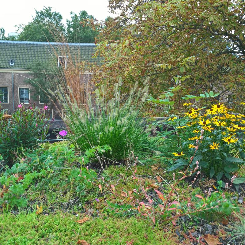 De combinatie van water en planten versterkt elkaar, want groen functioneert niet zonder water. Hierdoor kunnen op een dunne bodem veel verschillende soorten planten op het dak groeien, omdat beschikbaarheid van water geen beperking meer is. Boven Project Smartroof 2.0 vliegen de bijen dan ook vrolijk rond.
