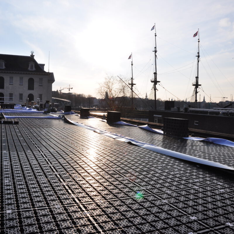 Op het Marineterrein ligt een blauw-groen onderzoeksdak, Project Smartroof 2.0. Op dit dak wordt wetenschappelijk onderzoek gedaan naar de verkoelende werking van blauw-groene daken.