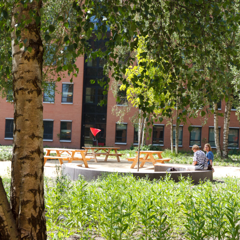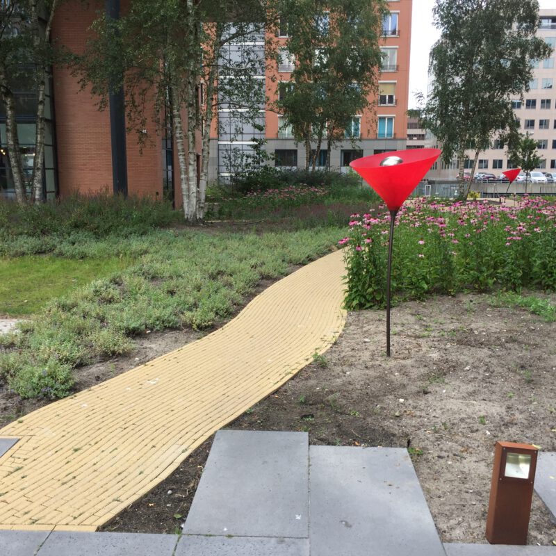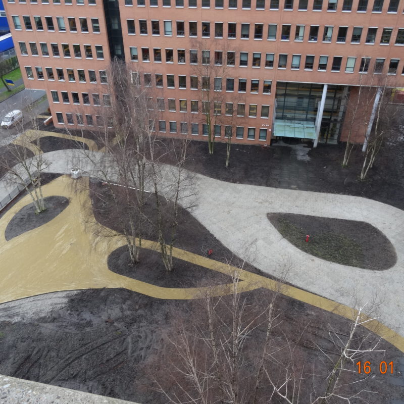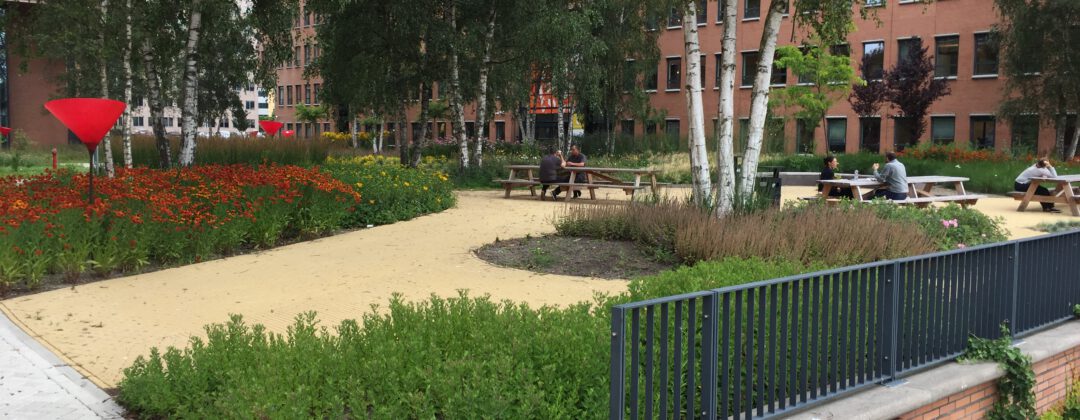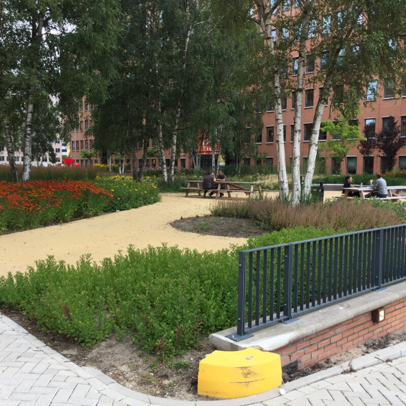 De gebouwen aan de Hullenbergweg scoren maximaal op de BREEAM-factor ‘Landgebruik en Ecologie’. Meer dan 70 procent van de footprint van deze campus is groen! De hoge score op landgebruik en ecologie komt omdat er zeer veel inheems groen is aangebracht op het half verhoogde dak van de parkeergarage, die de ruimte als een plein tussen de drie gebouwen opvult.