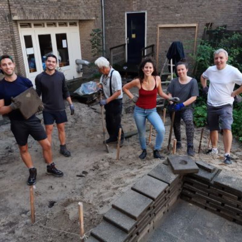 De buurtbewoners hebben in augustus 2020 nieuwe stappen ondernomen in de regentuin. Zo is een groot deel van de versteende binnenplaats vergroent. Er zijn circa 900 stoeptegels verwijderd, samen met een kunststof mat die gebruikt worden onder speeltoestellen, wat gelijk staat aan een oppervlakte van ruim 120m2. Nu kan het regenwater na een hevige bui beter in de bodem infiltreren. Een deel van de stoeptegels zijn hergebruikt in stapelmuurtjes waar men op kan zitten. Met het plaatsen van de stapelmuurtjes is nagedacht over het creëren van reliëf. Door de hoogteverschillen kan regenwater afstromen naar plekken in de tuin die daar (regen)bestendig voor zijn gemaakt. Er is rekening gehouden met beplanting voor natte en droge stukken. Al deze Weerproof maatregelen zorgen ervoor dat er minder regenwater direct wordt afgevoerd, het regenwater goed wordt gebruikt en daardoor de kans op wateroverlast wordt verkleind.