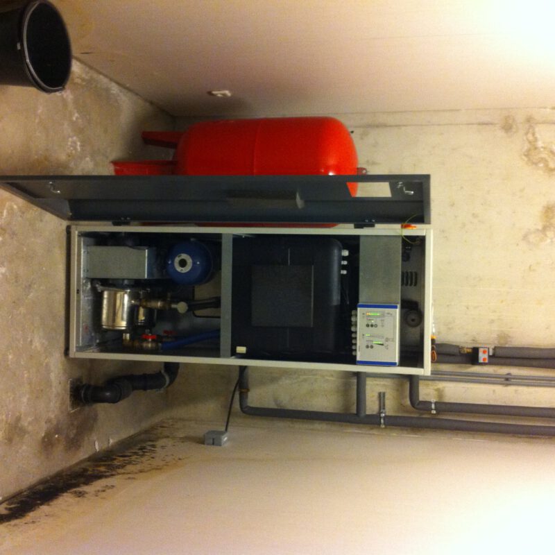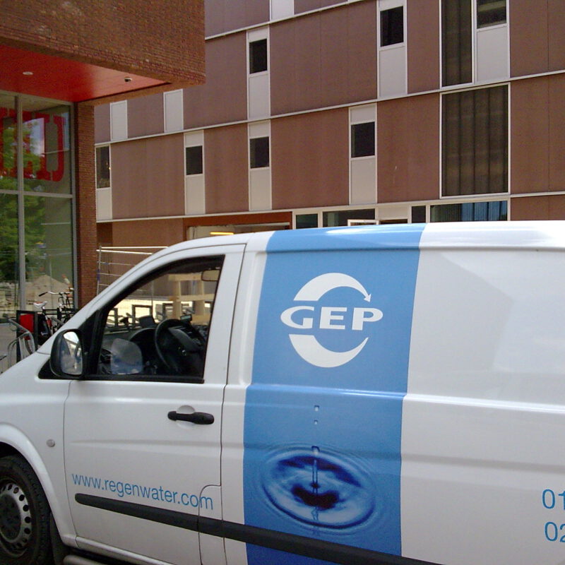Professioneel regenwatersysteem bij een school. Een school is uitgerust met een waterkelder waar tevens een industrieel regenwaterfilter ingebouwd is. Het regenwater van het dak (ca. 3000 m2 dakoppervlak), wordt hiermee opgevangen. Het gefilterde regenwater stroomt de waterkelder in van waaruit het verpompt wordt richting de technische ruimte. Daar staat een dubbele pomp met systeembesturing die zorgt voor een continue druk bij alle toiletten in het gebouw. Deze besturing schakelt over op drinkwater zodra de waterkelder leeg is geraakt (na langdurige periode van droogte).