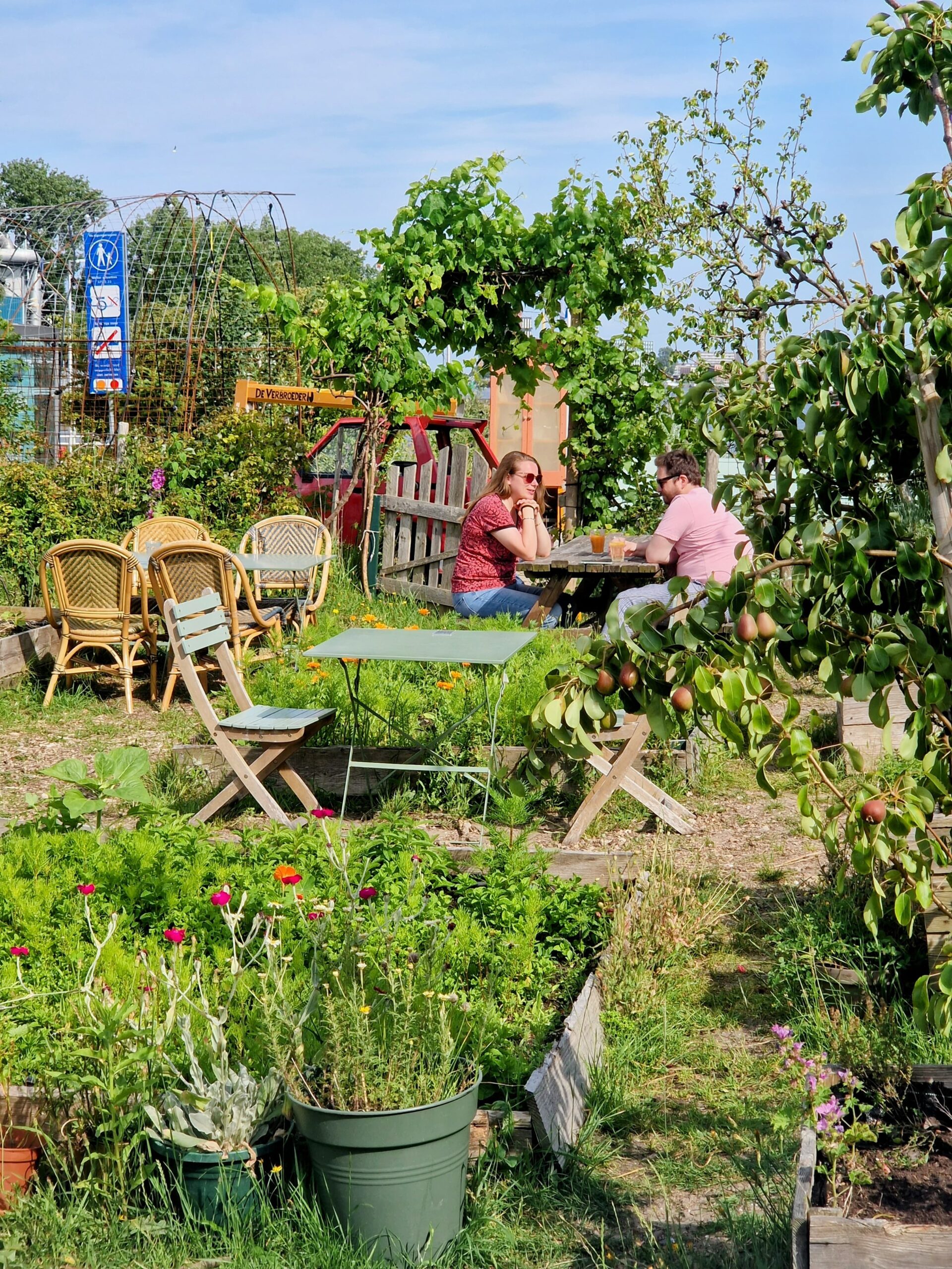 ‘Er komen veel mensen uit de buurt voedselresten brengen voor in de wormenbank. Hieruit maken we compost om de tuin en de bodem te voeden, en met een gezonde bodem hou je natuurlijk meer vocht vast!’, verteld Wendy, mede oprichter van de VerbroederIJ.