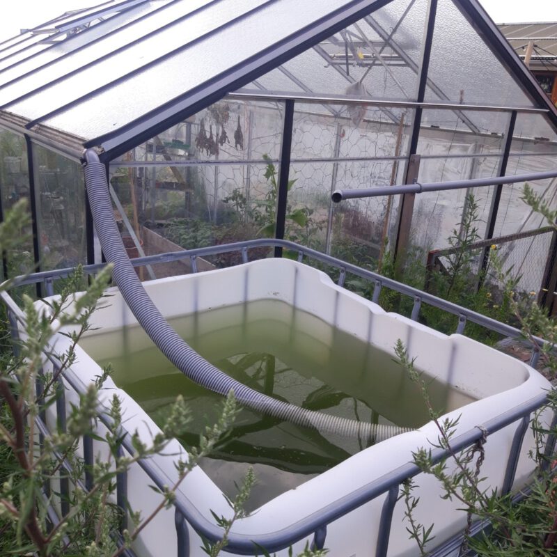 Tijdens warme zomerdagen heeft de moestuin het water hard nodig, de tonnen zijn dan vaker leeg dan vol. Last van muggen, die groeien in stilstaand water, hebben ze dan ook niet. Gelukkig heeft het strandpaviljoen een groot dakoppervlak, na een regenbui raken de containers snel weer vol.