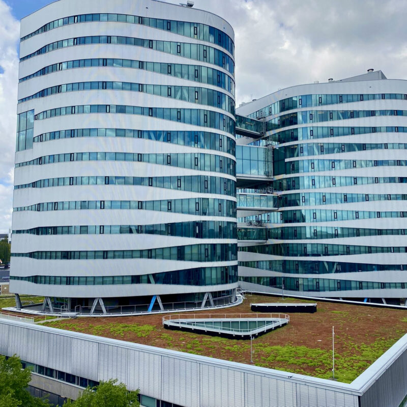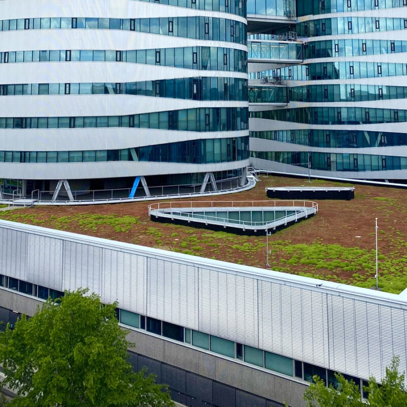 Neerslag die op het terrein, de daken óf de groene daken van het hoofdkantoor valt, wordt (al dan niet vertraagd) afgevoerd via hemelwaterbuizen naar de regenwatervijver. Het water dat in de vijver terecht komt, wordt daarna op biologische wijze gefilterd. Een zogenaamd helofytenfilter zorgt voor de zuivering. Vervolgens kan het water langzaam uitstromen op de Amstel via een speciaal aangelegd riool.