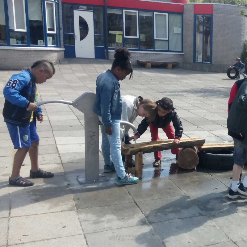 De kinderen, leerkrachten en ouders genieten enorm van het nieuwe plein! Er ontstaan geen plassen meer.