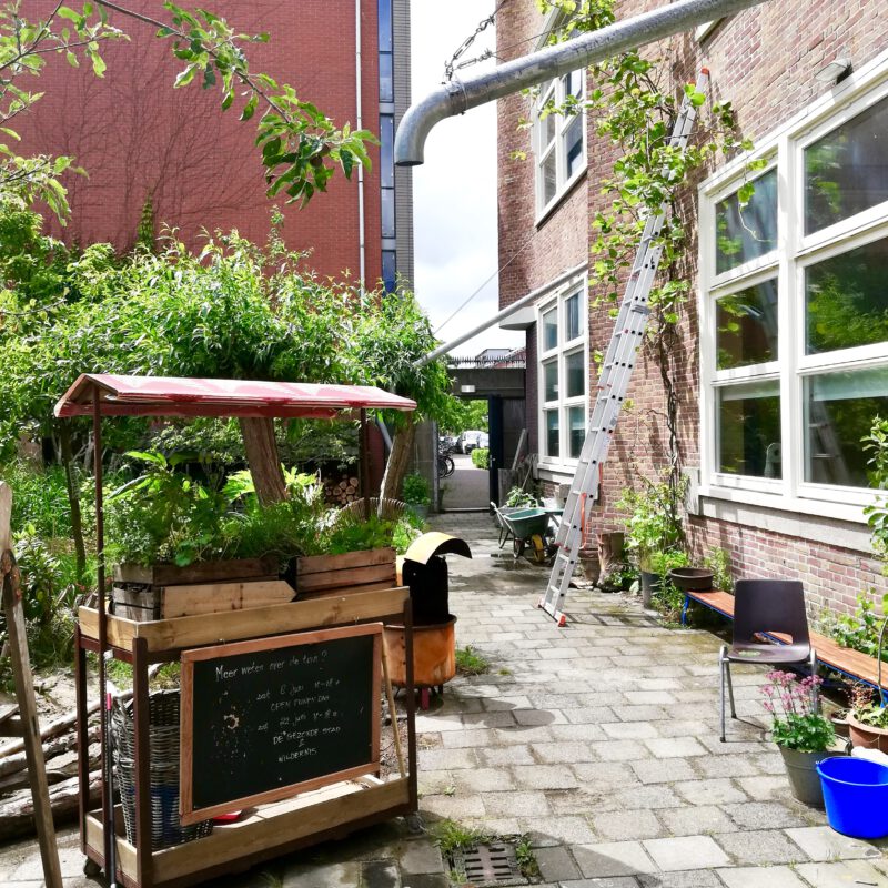 Dit voormalige schoolplein is door de buurtbewoners ingericht als onderzoeksplek. De tuin van Midwest is het testlab van Buro Regen&Water. Zij gebruiken de tuin om nieuwe nieuwe weerproof maatregelen uit te proberen.