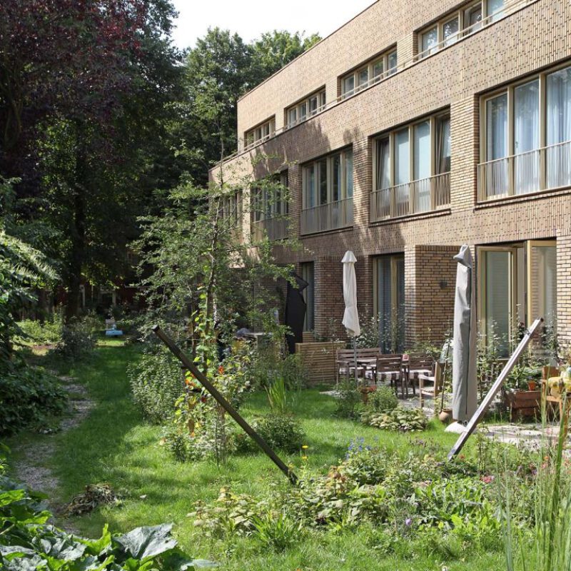 De buitenruimte is ingedeeld in drie verschillende sferen: de hof, de gaard, en de tuinen. De hof is een intieme ruimte met kruiden- en klimplanten en deel van de openbare wandelroute door het blok. De gaard is een gemeenschappelijke natuurrijke tuin, met daarin een verblijfsplek en een speelplek. Tezamen met voorzieningen in de gevels biedt de bijzondere beplanting een veelheid aan nestel- en schuilmogelijkheden voor kleine dieren.