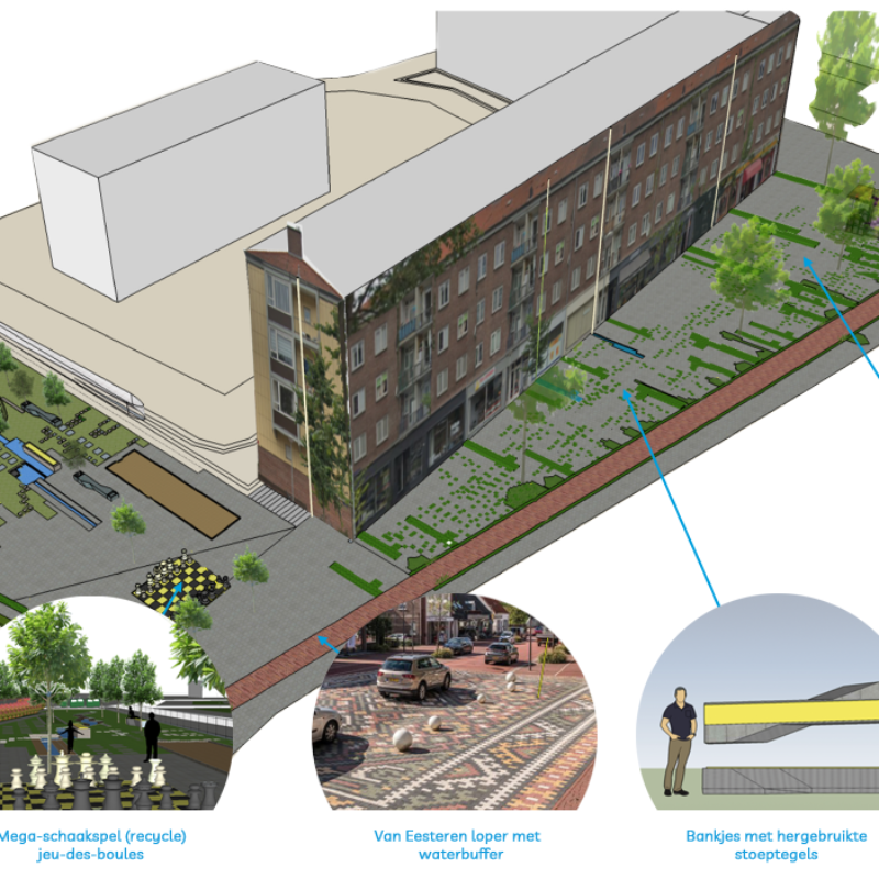 Het gerealiseerde pixelparkje is nog maar het begin. Het parkje in onderdeel van een ambitieus groenplan om de buurt te vergroenen en er een ‘mobiele proeftuin’ van te maken. Deze proeftuin omvat onderdelen zoals pixelparkjes, weerproof wadi’s, circulaire speelobjecten, kunst, verplaatsbare paddenstoelen containers en klimaatbestendige parkeervakken. Een explosie aan goede ideeën. Alle onderdelen hebben als gemeenschappelijke noemer dat de straat klimaat robuuster en socialer wordt.