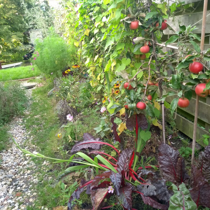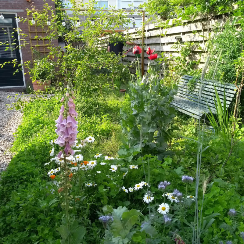 In de zomer van 2019 verhuisde Suzanne naar een huis met een volledig betegelde achtertuin in Amsterdam Noord. Suzanne is tekstschrijver, communicatieadviseur én tuinvrouw. Ze haalde alle 722 tegels eruit, strooide kiezels, groef wadi’s en zaaide groenbemesters. De tuin is nu een groene oase waar regen als een spons in wegzakt en waar bloemen en fruitbomen voldoende water en ruimte hebben om te groeien.
