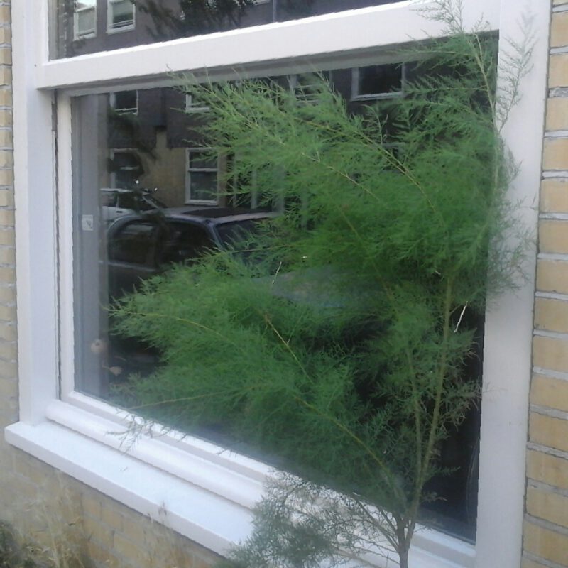 Ik heb ook een geveltuintje in de Nieuwe Pijp. Door de ligging langs het pand, kan het regenwater niet direct mijn geveltuin bereiken. Dit is goed te zien op de foto, waar een deel van de stoep nat is. Mijn idee zou zijn om de regenpijp af te koppelen als extra toevoer aan water voor het geveltuintje. Ik ben aan het onderzoeken wat daarin de mogelijkheden zijn.