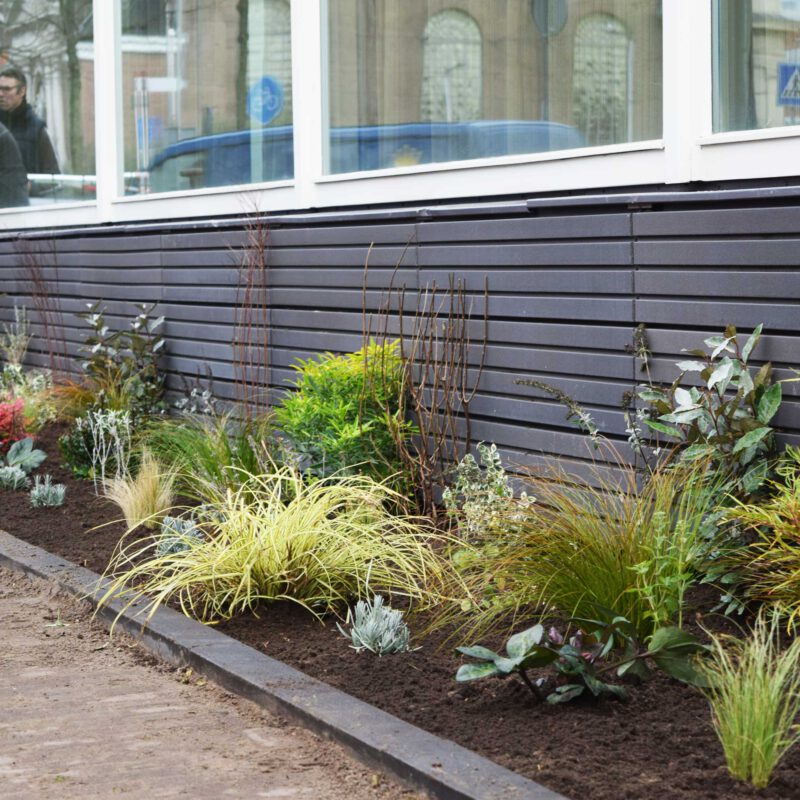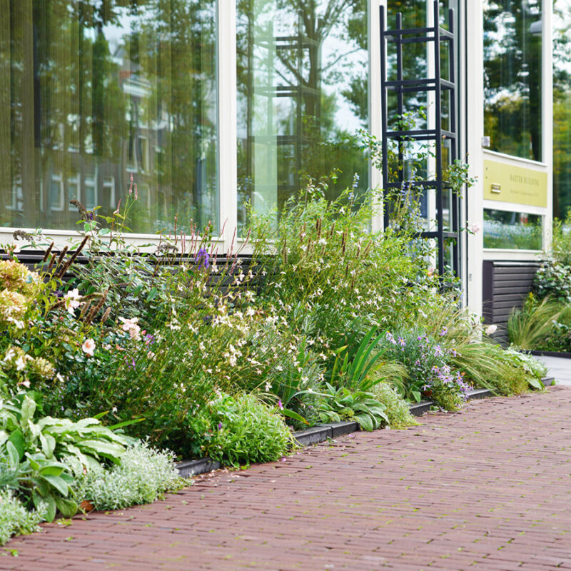 Drie keer zo breed en dubbel zo diep als de gemiddelde geveltuin in Amsterdam. Zo groot is de gevelborder die, in samenwerking met zusterbedrijf Green Value Creation, Baxter Building, de gemeente en het Knowledge Mile Park heeft Green City Buzz, in de week van 10 december 2018 is aangelegd. De border siert de hele gevel van het hoekpand en een aantal aangrenzende monumenten van dezelfde eigenaar.