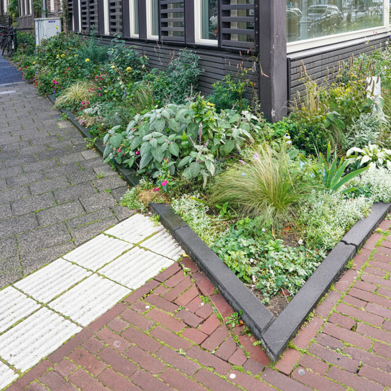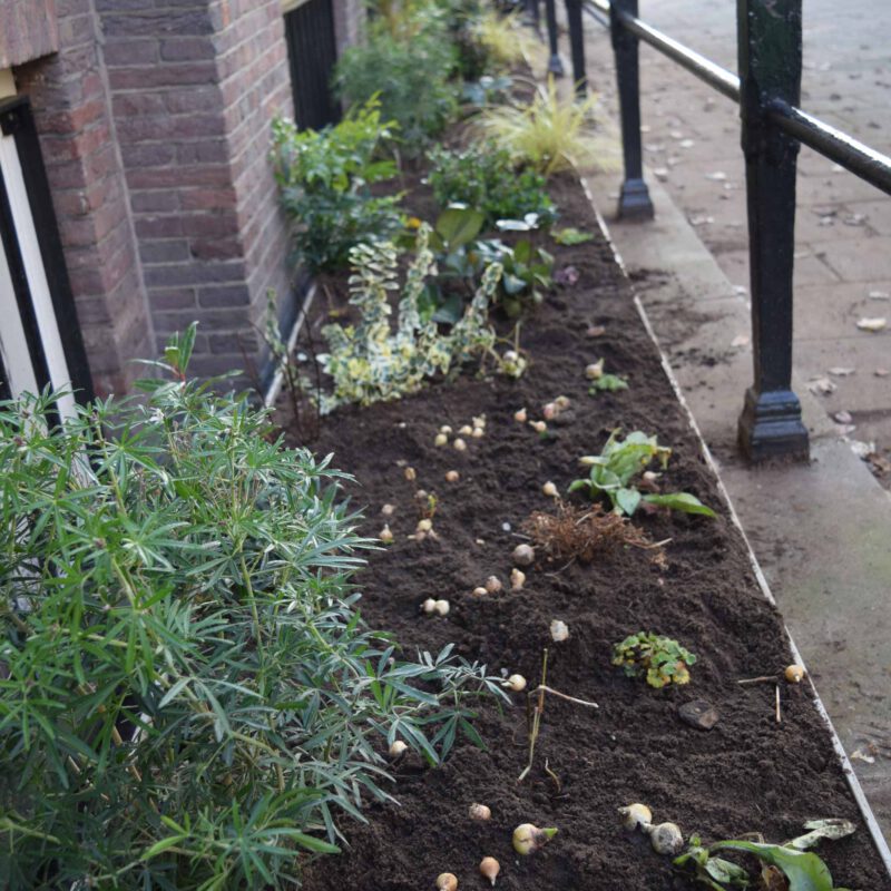 Voor de border is een laag van 60 centimeter diep afgegraven en gevuld met onkruidvrije en verrijkte aarde. De grond van de gemiddelde geveltuin in Amsterdam reikt maar tot 30 centimeter en bestaat daaronder uit zand, dat regenwater veel sneller in het grondwater laat zakken. Niet alleen geeft diepere grond de planten de beste start, ook geeft dit ruimte voor gezond bodemleven, waardoor een ecosysteem ontstaat. Omdat de border significant breder, dieper en langer is dan gebruikelijk en daarnaast vanaf de aanleg dicht beplant is, heeft hij een heel grote waterbergingscapaciteit.
