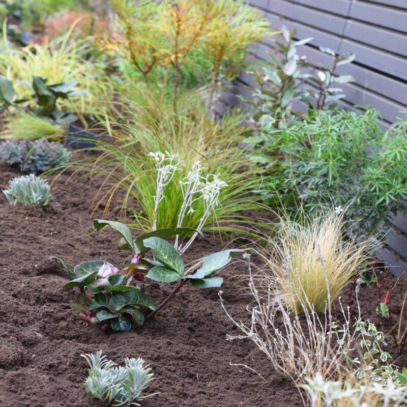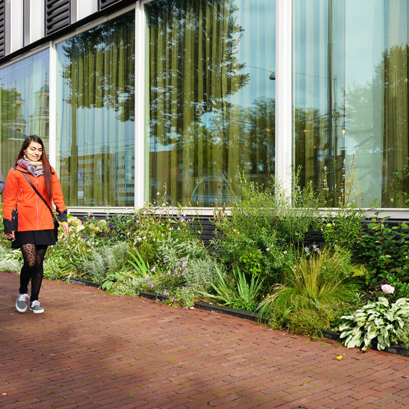 De tuin telt 152 verschillende plantensoorten, die qua kleur en andere eigenschappen precies zo zijn uitgekozen dat ze zowel bij het karakter van Baxter Building als de omgeving passen. De tuin blijft het hele jaar interessant: door variërende bloeitijden en verschijningsvormen is er altijd wat te zien. De planten komen bovendien niet uit de kas, maar van het land. Dat maakt ze sterker, waardoor ze zich snel en stevig wortelen. Ook hebben we voor veel planten met behaard blad gekozen, die fijnstof extra goed uit de lucht filteren. Zo is deze gevelborder in meerdere opzichten duurzaam.