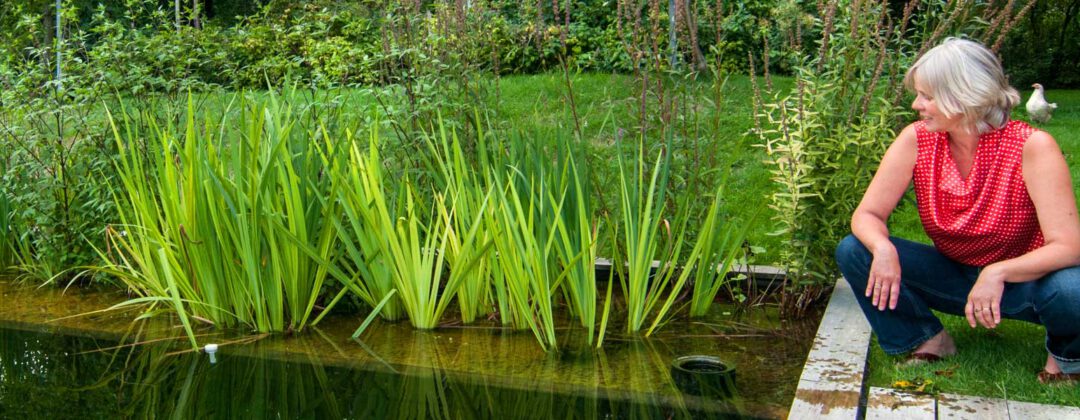 Een zwemvijver, een kruipruimte vol schelpen en zinkputten met grind: Nancy Wiltink zoekt graag naar duurzame, speelse en betaalbare maatregelen om haar huis en Tuin aan Zee Weerproof te maken.